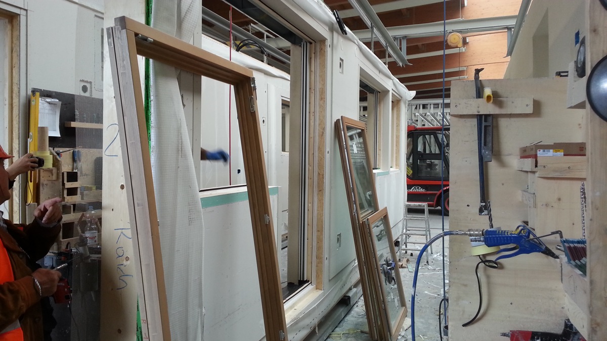 foto 6 Gli infissi, in questo caso, vengono montati direttamente in stabilimento, permettendo di ridurre ulteriormente i tempi di cantiere e consentendo un montaggio degli stessi sempre perfetto. Non tutte le aziende eseguono questa operazione in stabilimento; alcune optano per il montaggio degli infissi direttamente in cantiere dopo il montaggio delle pareti (un po’ come per l’edilizia tradizionale).
